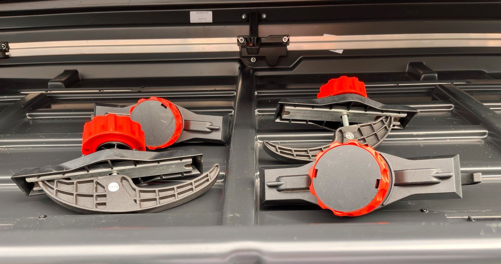 Weitere Highlights dieser Box sind die beidseitige Öffnung des Deckels, was für stets bequeme Zugänge zum Inhalt sorgt, sowie das patentierte Schnellspann-Befestigungssystem für eine werkzeuglose Montage buchstäblich im Handumdrehen. Das edle Hochglanz-Schwarz sorgt für einen souveränen Auftritt mit neidischen Blicken und die Mehrpunkt-Zentralverriegelung für den sicheren Verschluss Deiner Ladung.
